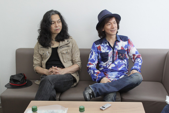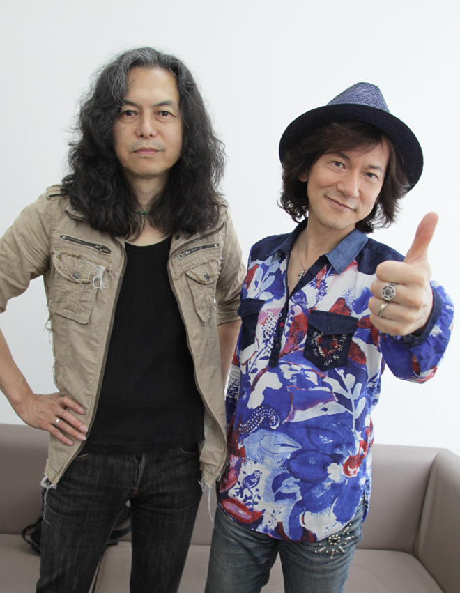 ──僕の立案&プロデュース・アルバム、2007年9月リリースの『RESPECT THE STONES 2』でおふたり名義「Paint It, Black」レコーディング。レコ発イベント<LIVE ! RESPECT THE STONES !! VOL.2 ~ストーンズ・ナイト~>にも出演してもらって「Jumpin’ Jack Flash」「Paint It, Black」「Stray Cat Blues」「Sympathy For The Devil」をオン・ステージ。ファイナルの出演者全員での「Honky Tonk Women」では僕もジョインしてシャウトさせてもらった。もう10年経つんだ。その後、拙書『ジャパニーズ・ロック・インタビュー集~時代を築いた20人の言葉~』ほか何度もそれぞれ単独のインタビューをお願いしたけど、揃っては初めて。まるでミック・ジャガー&キース・リチャーズ同時インタビューみたいだね。ユカイ&shake一緒の取材は…。