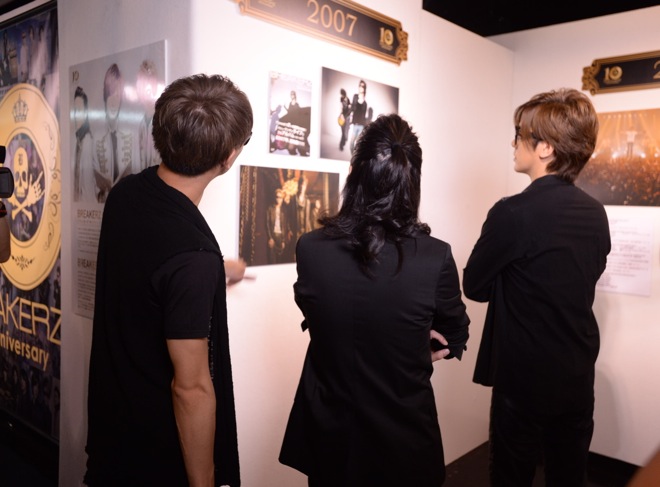 DAIGO、AKIHIDE、SHINPEIは自らの歴史を写真パネルなどで辿り、感慨深げな表情を浮かべる場面も。また、ギャラリー限定グッズやガチャガチャをその場で購入するなど和やかな一幕を見せ、7月15日および16日に控えた豊洲PITでの10周年記念ライブに向けて士気を高めた。