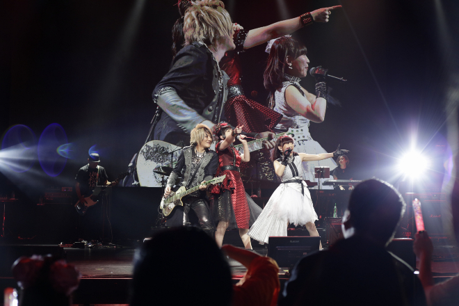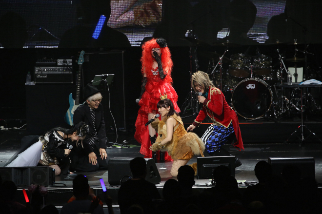 その次に登場したのがALI PROJECT。ボーカル宝野アリカによる完璧に作り上げられた世界観の中で、「亡國覚醒カタルシス」「勇侠青春謳」「聖少女領域」と「裸々イヴ新世紀」。ロサンゼルスで異世界な空間が出来上がったまま、観客を魅了した。