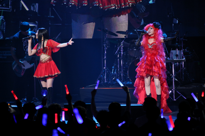 続くGARNiDELiAのステージでは「ambiguous」を披露し、ボーカル・メイリアが伸びやかな歌声を聞かせると、観客はコールにあわせ勢い良く飛び跳ね、さらにその後ダンサーが登場し、「grilletto」「SPEED STAR」で圧倒的な爆発力を見せつけ「約束-Promise code-」へと続けた。どれも、熱量の高い楽曲ばかり。ここでMCで綾野ましろを呼び込み、「空色デイズ」をコラボ。思わぬ展開に観客からは喜びの歓声が上がっていた。