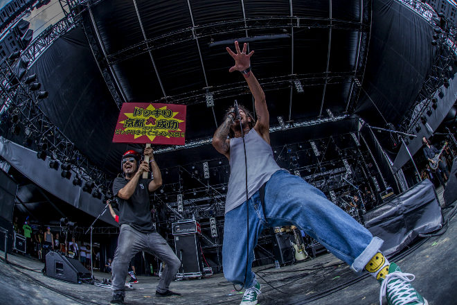 昨年、牛若ノ舞台でトリを務めた時に、演奏中、電源が落ちて音が出ないアクシデントが起きた。30分以上その状況が続いた時、4人はドラムの生音と声とパフォーマンスでひたすらステージに立ち続け、観客も同様に声をあげてひとつのステージ、時間を生み出した。毎年のようにミラクルやドラマを生む<京都大作戦>だが、2016年のハイライトは、まさにあの日、あの状況でしか起こり得なかったステージだ。今回、源氏ノ舞台に立つことになったのは、TAKUMAが「来年は源氏でやってもらわないとな」と言ったことからはじまっている。10-FEETと同様、JESSEはRIZEで20周年を迎え、同じ時を分かち合って来た盟友同士。思いを果たすステージであり、しかも1番手という最高の期待を背負ってのステージだ。