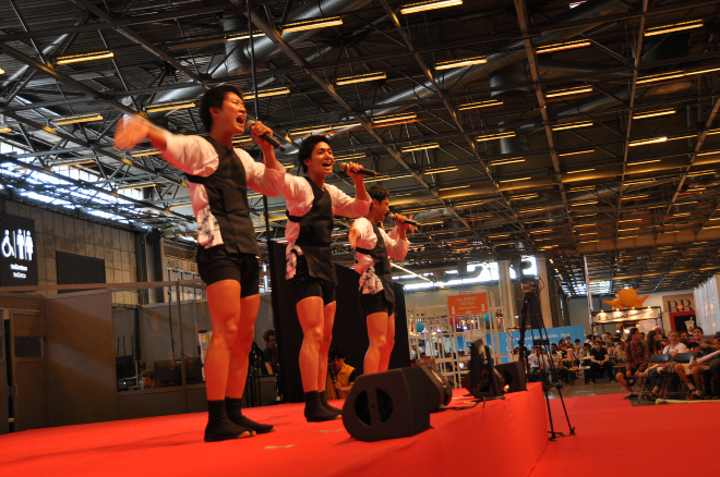 東京力車は、<JAPAN EXPO>イベント1日目にSAKURAステージに登場。オープニングでダイナミックなアクロバットに歓声がわきあがった。新曲「男道」を含め5曲を披露し、メンバーの石橋拓也は「僕らは2020年東京オリンピック開催と、人力車を世界へ広めたいと思っています!」とフランス語で語り掛け、大きな拍手と共にステージを後にした。