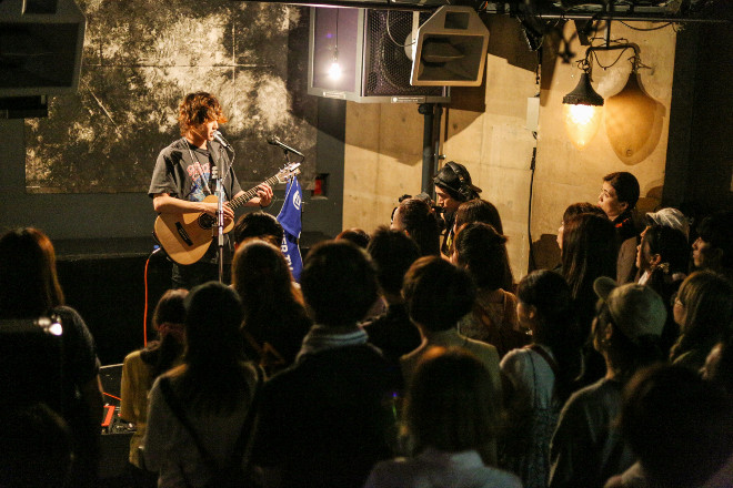 メインステージでバンドマンたちの熱い演奏が続く合間を縫って、Bar Stageではループステーションを駆使するシンガーソングライターReNが一人多重録音によるパフォーマンスを繰り広げた。アコースティックギターを打楽器のようにも使いながら、2本のマイクと足元に用意した録音機材を操り、その場で音を積み重ねて歌を届ける。「Illumination」をはじめ、少ない音数から繊細に声と楽器の音とを重ねて、次第に迫力を増すサウンド。メロディは洋楽ライクだが、日本語で綴る歌詞の内容はとても泥臭い。この日、前後編の2回にわかれたステージでは「Lights」「Life Saver」「PASSION」という、とりわけ音楽に救われてきた自分自身の心情をストレートに込めた楽曲が多かった。「この音楽を僕は生涯にわたってやり続けていくと思います」と、ReNがMCで口にした決意の言葉も印象的だった。