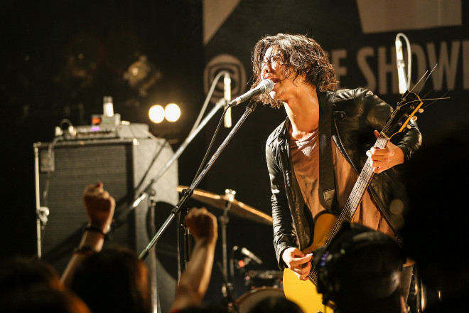 イベントのトリを飾った大分発のロックンロールバンドSIX LOUNGEはボーカルのヤマグチユウモリ(G&Vo)が革ジャンを着てステージに乗り込んできた。B.J.トーマスの1969年のヒットソング「雨にぬれても」の穏やかなSEをぶった切るように「ふたりでこのまま」からスタートしたライブ。「正々堂々いちばん汗かいて帰ります」というヤマグチの言葉のとおり、巻き舌気味に歌いあげる「プラマイゼロ」から怒涛のドラムプレイで魅せた「トラッシュ」などパワフルなロックサウンドでフロアを熱くしていった。MCでは「他のバンドがかっこいいのは知ってるけど、負ける気はしないです」という不敵な言葉でも煽る強気なステージ。“この歌があればきっと大丈夫”と歌うアンコールの「夢みた君が大好きだ」まで、その体当たりのロックンロールはやがてフロアのお客さんを笑顔に変えていた。