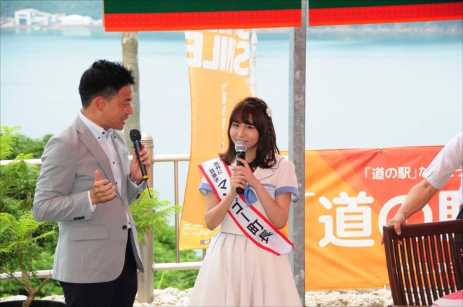 SKE48の大場美奈が7月13日(木)に宮崎県日南市南郷町(マンゴー町)の1日マンゴー町長に就任し、その任命式が道の駅マンゴー(なんごう)で行われた。