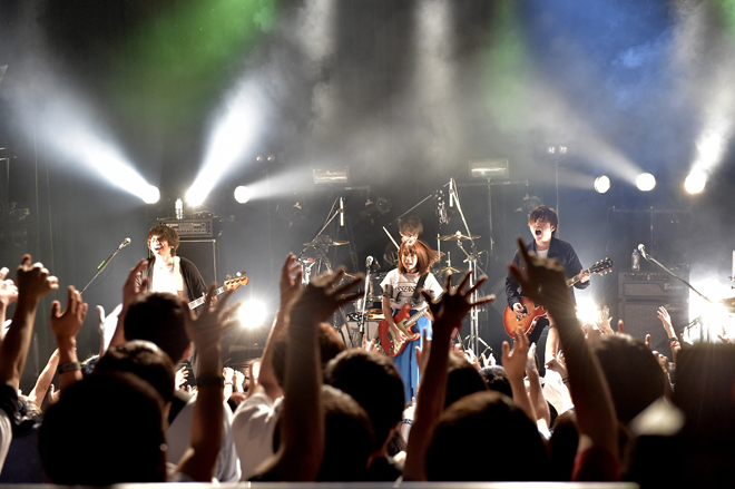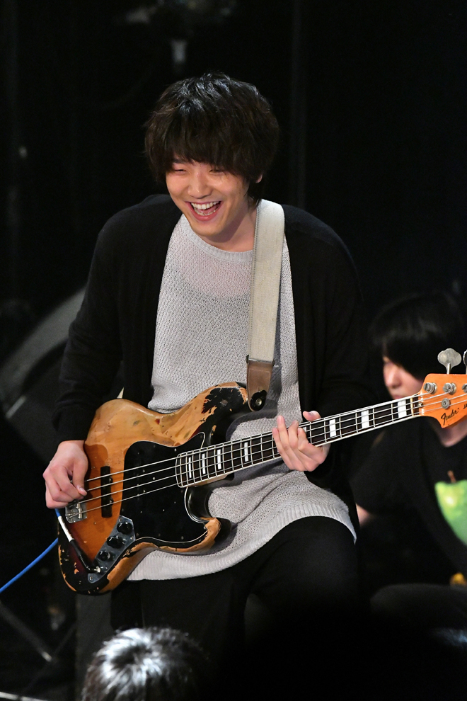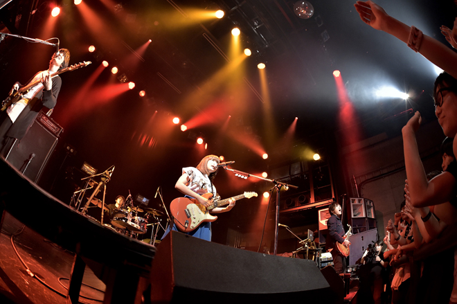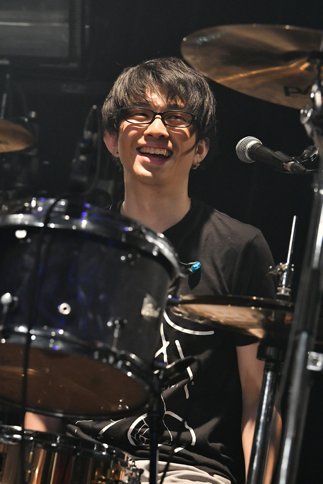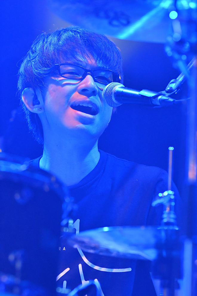 終盤は、おなじみの盛り上げチューンを連発して、一気に波に乗る。それまで定位置を離れずリズムキープに徹してきたそうくんが、はにかみながらステージを横切り、イッチーとポジションをチェンジする。めっちゃ笑顔。「命短し恋せよ乙女」では、最近恒例の、フロアにいるファンの名前を織り込んだコール&レスポンスで、さらにヒートアップ。“よしきくん”の名を聞いた瞬間、X JAPANばりのツインペダルを繰り出すきょーへーに、ポチが大ウケ。なんとも大らかで楽しい、ワンマンならではの親密なシーン。序盤はメンバーの顔にやや緊張感が見られたものの、終わってみれば大団円。セットリストも演奏も、現時点でのベストと言っていいだろう。