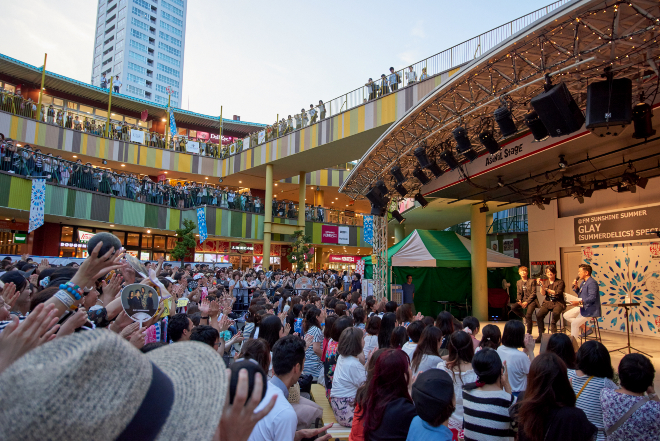 この日は前日12日(水)に大阪あべのキューズモールにて行われた公開収録に続いての公開収録。大阪へ駆けつけた約2300人の動員を大きく上回る約4000人の来場者で会場は埋め尽くされ、地鳴りの様な歓声の中、TERUとJIROがステージに登場。ニューアルバム『SUMMERDELICS』に関する制作秘話や、アルバムタイトルにかけて「夏」についての話、アリーナツアーのファイナルとなる日本ガイシホールでの話など約40分のトークステージを繰り広げた。