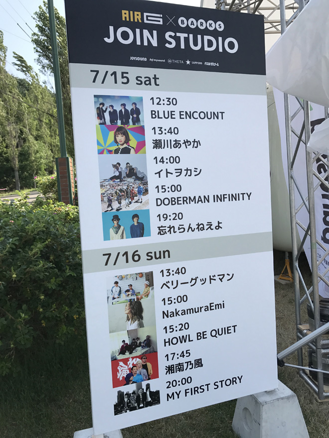 JOIN STUDIOでのアーティスト・トークは、リコー THETAで360°映像がライブ配信(YouTube)されるので、岩見沢の熱気を日本全国でお楽しみいただければ幸いだ。現地ではカラオケ「JOYSOUND」と音楽配信サイト「mysound」による“ダブルsound”コラボによる特製ラバーバンドが配布されている。オトクな特典が満載のスペシャルなラババンだ。