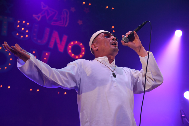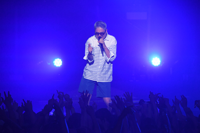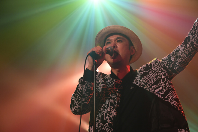 その後、RYO-ZとILMARIに「トリに相応しいヤバいバンドがこれから始まります!」とバトンを渡され、ステージに現れたのは“横浜が誇る東洋一のサウンドマシーン”ことCRAZY KEN BAND。今回は、8月2日(水)に結成20周年記念のベストアルバム『CRAZY KEN BAND ALL TIME BEST “愛の世界”』が発売されるとあって、豪華ヒット曲の数々をメドレーも交えながら惜しげもなく披露し、満員のフロアを魅了した。アンコールでは観客のリクエストから「LADY MUSTANG」を繰り出し、JBメドレーで盛り上げ、最後はお決まりの横山剣の「逃げろ!」の号令で全員ワチャワチャと撤収。ソウル/ファンク/ヒップホップ/レゲエ/歌謡曲/ロックなど、ありとあらゆるサウンドをミックスし、ショーマンシップ溢れる構成で矢継ぎ早に楽曲を展開していく彼らのライブは満漢全席のごとき華やかさ。時が経つのを忘れるほど、濃くて楽しいステージで会場を盛り上げ、初日のメインアリーナのライブステージは幕を閉じた。