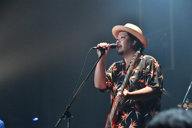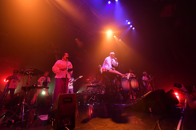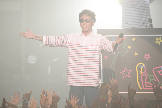メインアリーナのライブは、昨年同様、RIP SLYMEのメンバーがサブステージに登壇し、次のライブアクトを紹介してから始まるという流れ。PESに「死ぬくらい格好良くて好き」と紹介されて2番手に登場したAwesome City Clubは、清涼感あふれるディスコ/ブギー系のポップナンバーを次々に繰り出し、フロアを洗練された爽やかなムードに染めていった。中盤には8月23日(水)発売のAwesome City Club初のベストアルバム『Awesome City Club BEST』から新曲「ASAYAKE」を披露。ベースやドラムが荒々しく鳴らされるこの曲は、アーバンというよりはプリミティブな力強さを感じさせるシンガロング系のナンバーで、バンドの新たな表情が発露。彼らの次なる一歩を期待させるステージだった。