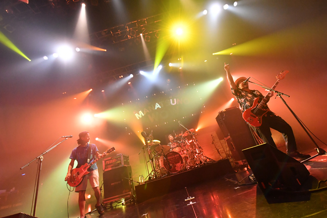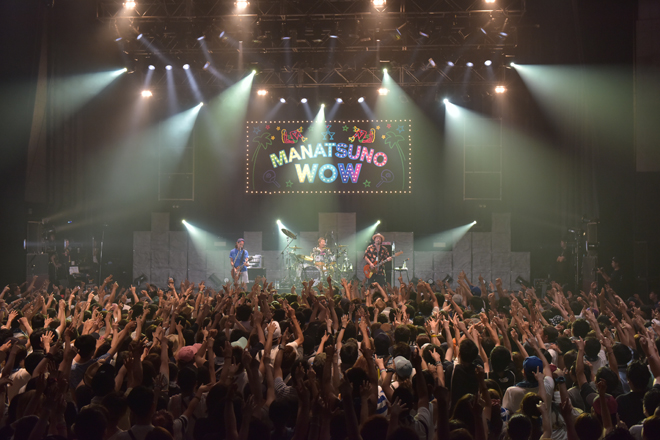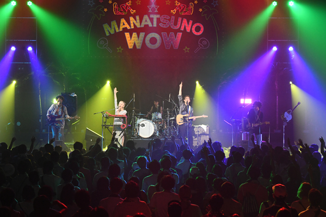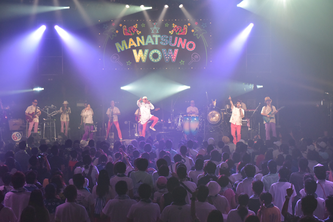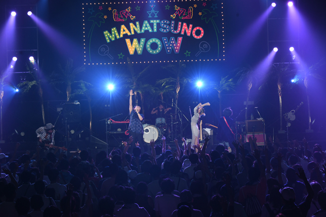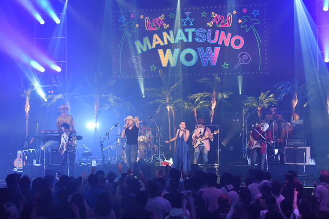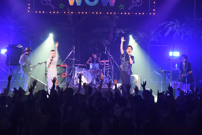 そのPESが「ここから先輩方がバシッとかましてくれます。マジでファンキーなグルーヴを感じてもらいたい」と絶賛し、ILMARIに「真夏のWOWでまさか見られるとは思ってなかった」と紹介されて登場したのはFLYING KIDS。確かな演奏力による、パンチがあって強靱なファンクナンバーをどんどん繰り出し、格の違いを見せつけていく。来年に結成30周年を迎える彼らは、新曲「ラッセーラ」に加え、「ドマナツ」の曲中では「楽園ベイベー」のカバーを披露するなどして会場のテンションをアップ。「幸せであるように」「風の吹き抜ける場所へ」「君にシャラララ」という代表曲の3連発でステージを締めくくると会場から大きな拍手と歓声が上がった。