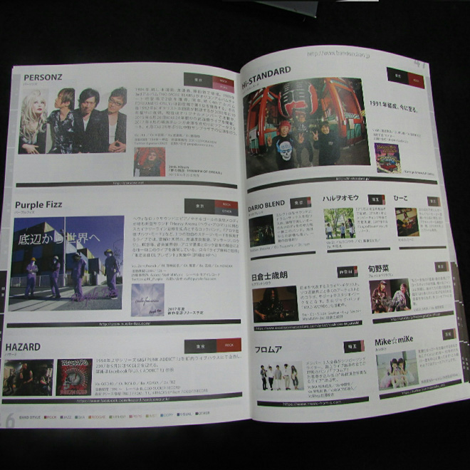 掲載内容は国内で活動する現役のバンド・アーティスト・スタジオミュージシャンやアーティスト活動を支える職業人(プロデューサー・ライブカメラマン等、その他19職を。 配布場所は全国のライブハウス・スタジオ/タワーレコード/HMV/ CDショップ/ヴィレッジヴァンガード/楽器店/BAR・CAFE/ 雑貨屋/音楽教室/各掲載バンドのライブイベント時の手渡し。50,000部発行。次号 2018年 1月 発刊