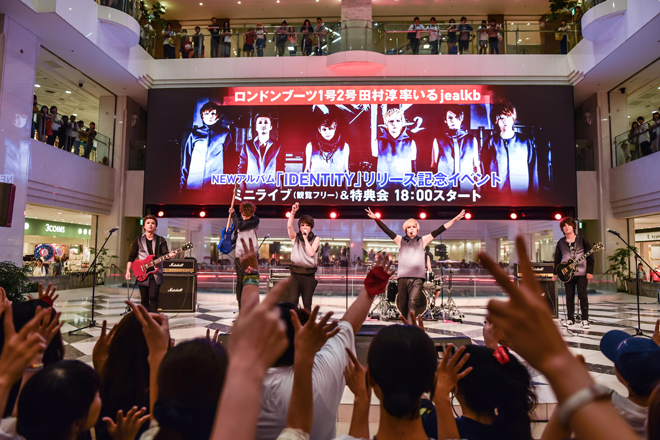 jealkbが7月18日、東京・池袋サンシャインシティ噴水広場にて、ニューアルバム『IDENTITY』のリリース記念イベントを開催した。『IDENTITY』は3年ぶりとなるニューアルバム。この日はフラゲ日のリリースイベントとあり、大勢のファンが会場に駆けつけ、フリースペースもギャラリーで膨れ上がった。