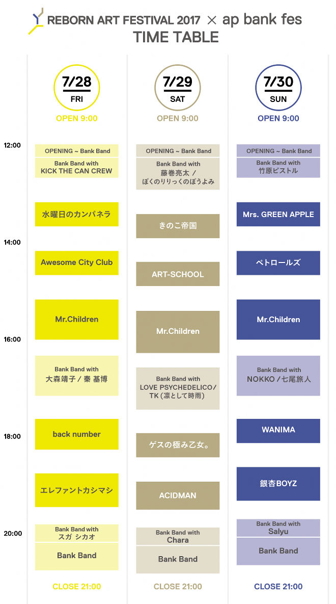 <Reborn-Art Festival × ap bank fes>、タイムテーブル発表