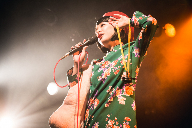 実の姉妹ユニットである彼女たちだが、姉の小春が奏でるアコーディオンの多層的な音色と、ももの圧巻の歌唱力はアクが強いながらも小洒落たムードを決して失わない。最後には観客で呼びかけ、コール&レスポンスで会場の空気をすっかり暖めて片平へとバトンタッチする。