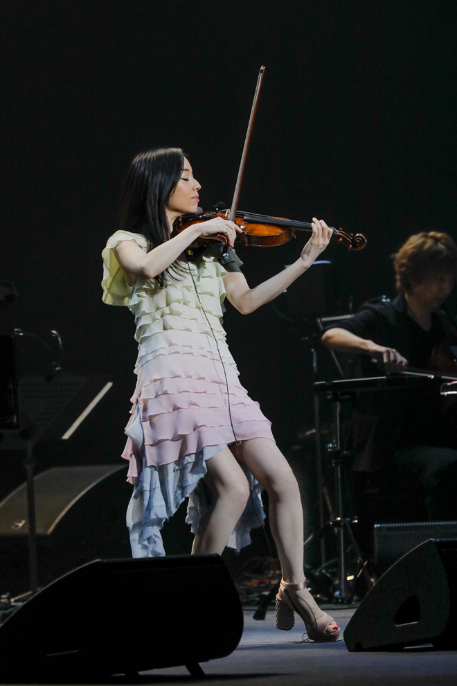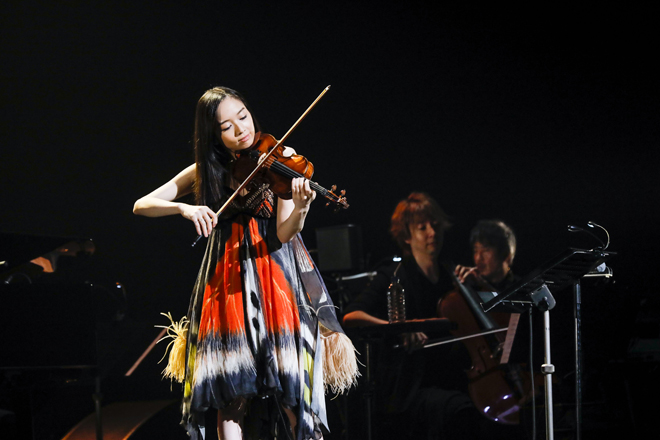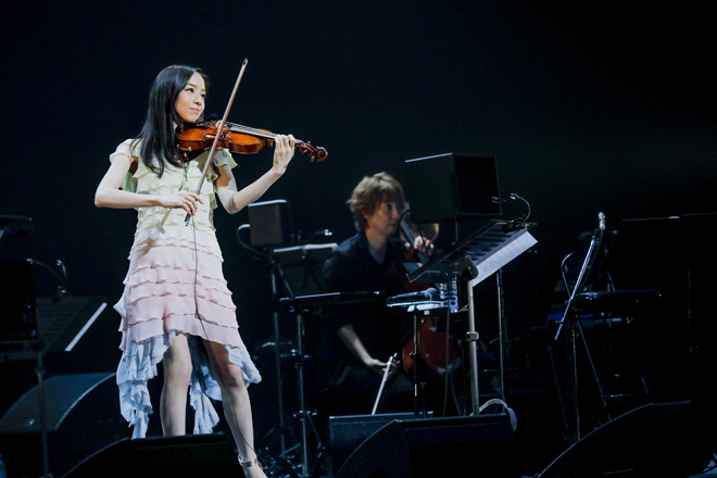 次に演奏されたのは、TBS『THE世界遺産』のテーマ曲でもあった「Les enfants De la Terre~地球の子供たち~」。地球をいつくしむメロディを一音一音大事に弾いていく。大きな愛情を感じさせてくれる一曲だ。そして前半最後は「You Raise Me Up」。すべての人間を励ましてくれる力を持った癒しの楽曲。懐かしく素朴なメロディをヴァイオリンで伝えてくれる。心が温かかくなるのを会場全体が感じているようだ。