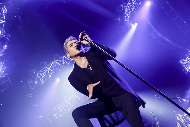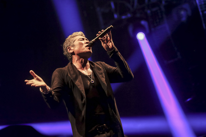 「SPEED」からの後半は一転して、“動”の展開。ウエノのベースがうなりをあげていく。バンドが一体となって、疾走していく。赤いライトで照らされたスモークがまるで炎のようだ。曲によって、吉川がギターを弾く場面もあった。パワフルなナンバーがこれでもかと繰り出されていく。猛暑を吹き飛ばすほどのエネルギッシュなパワーがほとばしったり、会場内が一体となって、シャウトしたり、シンガロングしたり、踊ったり、夕涼みの気分を堪能したり、吉川晃司の夏バージョン・ライブは唯一無二の輝きを放っていた。