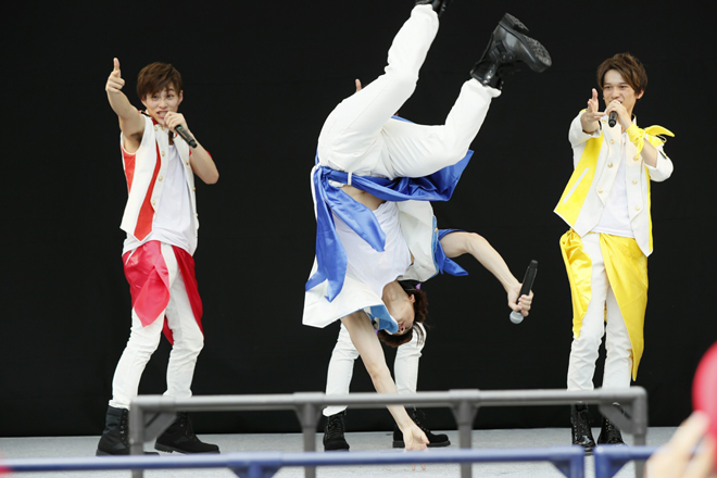 九星隊としてデビューしてまだ2ヶ月しか経っていないのに、ユニバーサルミュージックさんからCDデビューさせて頂くと聞き、驚きでもあり、すごく嬉しく思います。今回TNC夏まつりのステージで披露させていただいた「Flash」という曲は、全力で前に進んで行こうという疾走感溢れる曲となっていて僕達もこの曲のように突き進んでいけるよう頑張りたいと思っています。