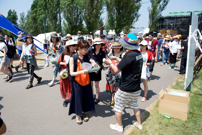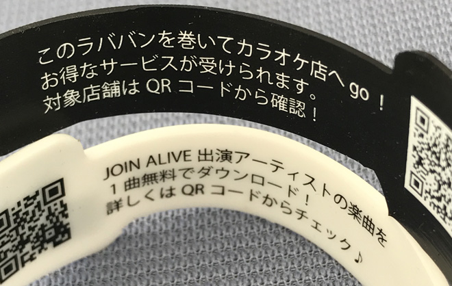 このラババンには裏側にQRコードが2つ印刷されており、ひとつは<JOIN ALIVE 2017>出演アーティストの楽曲を1曲無料ダウンロードできるという音楽配信サイト「mysound」の特別サービス、もうひとつが北海道内カラオケ店で割引サービスが一定期間受けられるというカラオケ「JOYSOUND」のスペシャルコードが埋め込まれている。フェスが終わっても、その余韻を存分に楽しんでほしいと願う両社のコラボ施策というわけだ。ちなみに、「mysound」の最新トレンドはハイレゾ、「JOYSOUND」の最新機種もハイレゾサウンドということで、ハイレゾリューションな高音質で音楽を楽しんでほしいという点も、両社共通したメッセージとなっている。