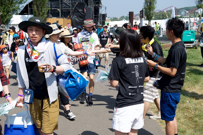 設置されたJOIN STUDIOには11アーティストが来襲し、北海道限定ナポリンサワーを飲みながらのぶっちゃけトークに花が咲いたが、我々BARKS陣営スタッフは、カラオケ「JOYSOUND」と音楽配信サイト「mysound」の“サウンド&サウンド”コラボによる特製のラバーバンドを作製、会場にやってきたみんなに無償配布を行った。5,000本/1日で全1万本を用意したものの、デザインのカッコよさとお得QRコード掲載で大人気を博し、あっという間に完全配布、こちらも大盛り上がりを見せることとなった。