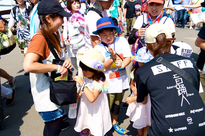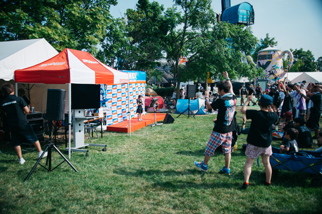 また、会場内に設置されたJOYSOUNDカラオケブースもたくさんの人々が思い思いの曲を熱唱、大いに盛り上がっていたが、二日目は大雨でステージが冠水してしまったため撤収、急遽そのカラオケセットをJOIN STUDIOに持ち込んで、即席カラオケ大会を勃発させるというハプニングも巻き起こった。予定外のサプライズのため3曲分の時間しか設けられなかったものの、C&K「Y」をしっとりと歌う女子に、SEAMO「マタアイマショウ」をフルコーラス歌い込んだ園児、そして隣ブースのレッドブル・スタッフが乱入しタオルを回して湘南乃風「睡蓮花」を熱唱するという、何でもありのハッピーフェスタイムの始まりとなった。大人も子供も男子も女子も笑顔はじける最高のひとときこそ、<JOIN ALIVE 2017>というフェスが生み出すマジックだ。