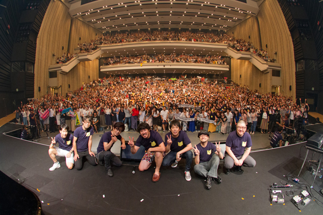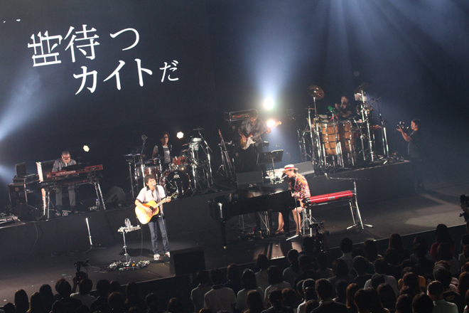 後半戦はアグレッシブなリズムの「キミドリ色の世界」、1部のアコースティックセットでも披露した「Ah Yeah!!」ではサビで会場中をタオルが舞う。最後に「トラベラーズ・ハイ」で会場を最高潮にし、ライブ本編は終了。鳴り止まない拍手の後登場したアンコールではさらにサプライズが用意され、「スペシャルゲストをお呼びしました!」(大橋)と呼び込まれたのは、小田和正だ。