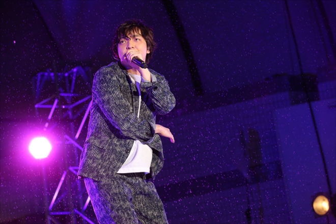 「この雨がみんなの想い出の雨に変わるように、ボクの曲のなかでも熱い曲を持ってきました!いっしょに盛り上がりましょう!」と1曲目から「Rise Up」を披露した。太陽がギラギラと輝く日をイメージさせる楽曲だが、天気などお構いなしに会場はヒートアップ。続けて「音楽でひとつになりましょう!」という三浦大知の言葉を合図にオーディエンスとのハンドクラップが心地よく鳴り響くなか、自身の音楽への愛を歌った「music」を披露し、幸せな空間を作り出していく。かと思えば続く「FEVER」では、会場を打って変わったセクシーな空間へと変貌させていく。