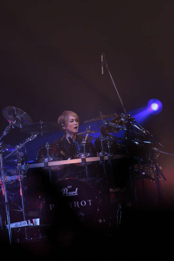 以降のPIERROTのステージはあくまでPIERROT然とした空気を放ちながら続いていった。そして、その終盤、「MAD SKY-鋼鉄の救世主-」に合わせて歌詞を口ずさみながら“監視された箱庭の楽園(エデン)で”という一節に出くわした瞬間、僕はその場で絶句していた。DIR EN GREYの「audience KILLER LOOP」にも登場するこの“箱庭”という言葉が、いっそう意味深長なものに感じられたのだ。双方のバンドが理想を具現化すべく長年を費やしながら耕し、築いてきた楽園。それは世界や宇宙といった単位から見ればごく小さな箱庭のようなものかもしれない。が、複数の箱庭が合体することで、果てしない大地のような広がりを見せることがある。そういえば、この「MAD SKY-鋼鉄の救世主-」には“大地を蹴る鋼鉄の救世主(メシア)”という一説もある。そしてDIR EN GREYがこの夜にも演奏していた「Un deux」で何よりも耳に残るのは“大地を蹴り進め”というフレーズだった。そうした言葉の重なりは単なる偶然でしかないのだろうが、もしかすると両者が目指す理想にはずっと昔から重なり合う何かがあったのかもしれない。そんな想いを抱きながら、僕はこの夜、帰路に就くことになった。(※2日目レポートは次ページへ)