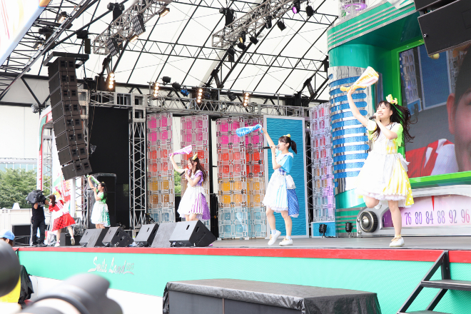 3日間で223組という圧巻の参加アイドル数で展開される今年のTIF。初日4日は湾岸スタジオ横のSMILE GARDENから指原莉乃が司会をつとめてのオープニングが執り行われ、トップバッターには前年と同じく佐々木彩夏(ももいろクローバーZ)が登場。「だって あーりんなんだもーん☆」などソロ3曲を披露して会場を盛り上げた。