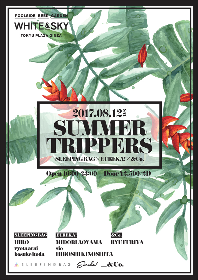 心地よい音と独特な雰囲気を発信し続けるDJクルー「SLEEPING BAG」、東京のハウスシーンにその名を轟かせる「EUREKA!」と、渋谷・神南エリアに店を構えるvintage clothing shop 「_&Co.」の3組がタッグを組み、東急プラザ銀座内にある“大人の遊び場” 「POOL SIDE BEER GARDEN WHITE&SKY」にて夏のスペシャルイベントを開催する。