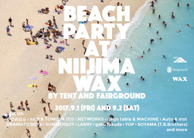 ビーチパーティ<TENT x Fairground @ 新島WAX>開催