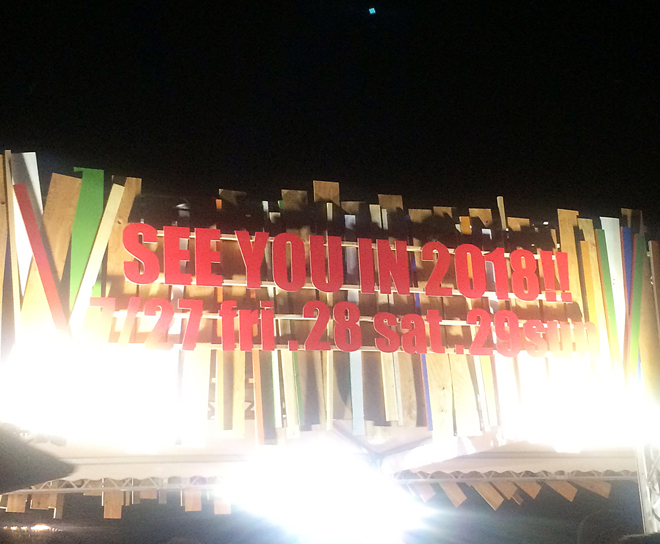 まるでどこから食べても餡が詰まっているように、見どころに溢れた2017年のフジロック・フェスティバル。そして3日目のゲートには、「SEE YOU IN 2018!! 7/27 fri. 28 sat. 29 sun.」のメッセージが掲げられ、明日からフジロスを患う人々を今年も勇気づけていた。それに、