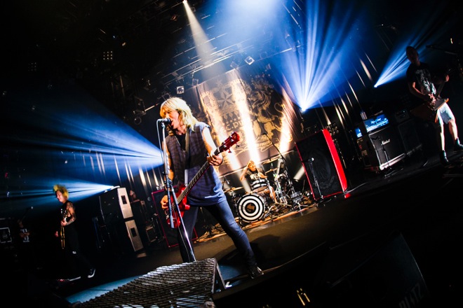 ハンドクラップとHiコールでJを待ちわびる赤坂BLITZのステージにメンバーが姿を現すと大歓声。そのフロアの熱を引き受けるようにJは走って登場し、「F.C.Pyro.! 飛ばしていけるか!?」と叫んで、やっちまえとばかりに「Go Charge」でライヴは幕を開けた。荒々しい演奏が導火線に火をつけ、間奏ではmasasucksと溝口和紀のギター陣が最前に出てきて、モッシュで盛り上がるフロアを煽り倒すパフォーマンス。続いて、燃え上がるような赤い照明の中、「PYROMANIA」が早くも投下された。灼熱の季節にふさわしい展開だ。Jが“退屈すぎて変わらない この世界中 今夜すべて 燃やせ燃やせ”という歌詞を“この赤坂 全部壊しちまえ”とアドリブで歌い、“F.C.Pyro.”のメンバーがいっせいにライターに火をつける光景の中、みんなが歌う声が響き渡り、その直後、Jの煽りを合図にフロアはクラウドサーフで大暴れ。