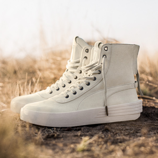 PUMA XO Parallelはイタリア製の高級ヌバックを使用したミッドカットのスニーカーブーツで、ミッドソールには独自のクッショニングテクノロジー「IGNITE」を採用。特徴的なシルエットはミリタリーと実用的なギアからインスパイアされたものだという。