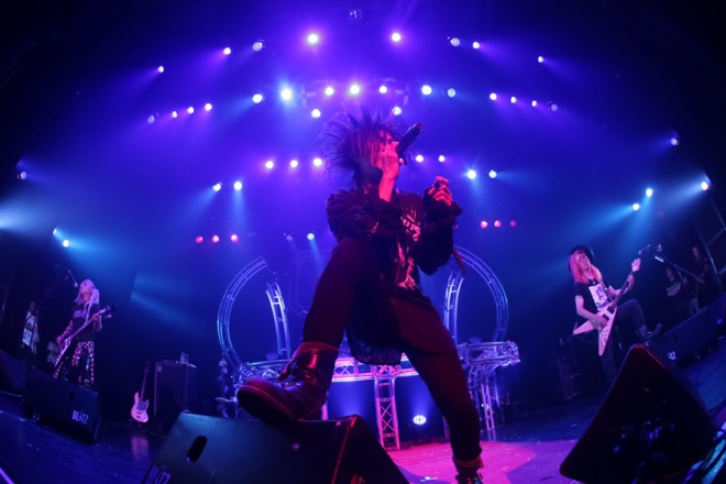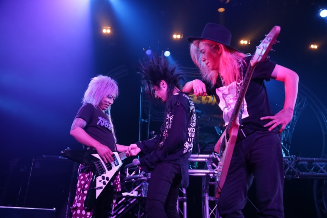 メンバーがステージに現れ、いよいよライブも中盤から後半へ。最狂パンクナンバー「かMARCH」「NO THANK YOU」では「お前ら、今日が最後ってわかってるよな。こんなもんかー!」とさらにオーディエンスに火をつけるSCEANA。「妖妖怪ROCK!」「へのへのもへじ」とアッパーなパンクチューンを次々投下してライブを加速させる。