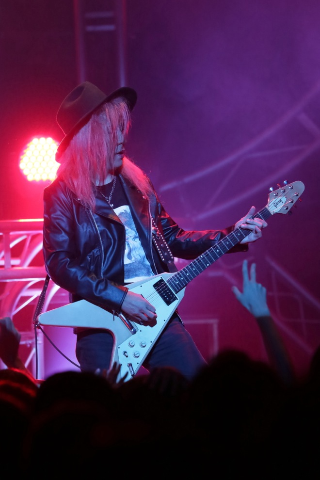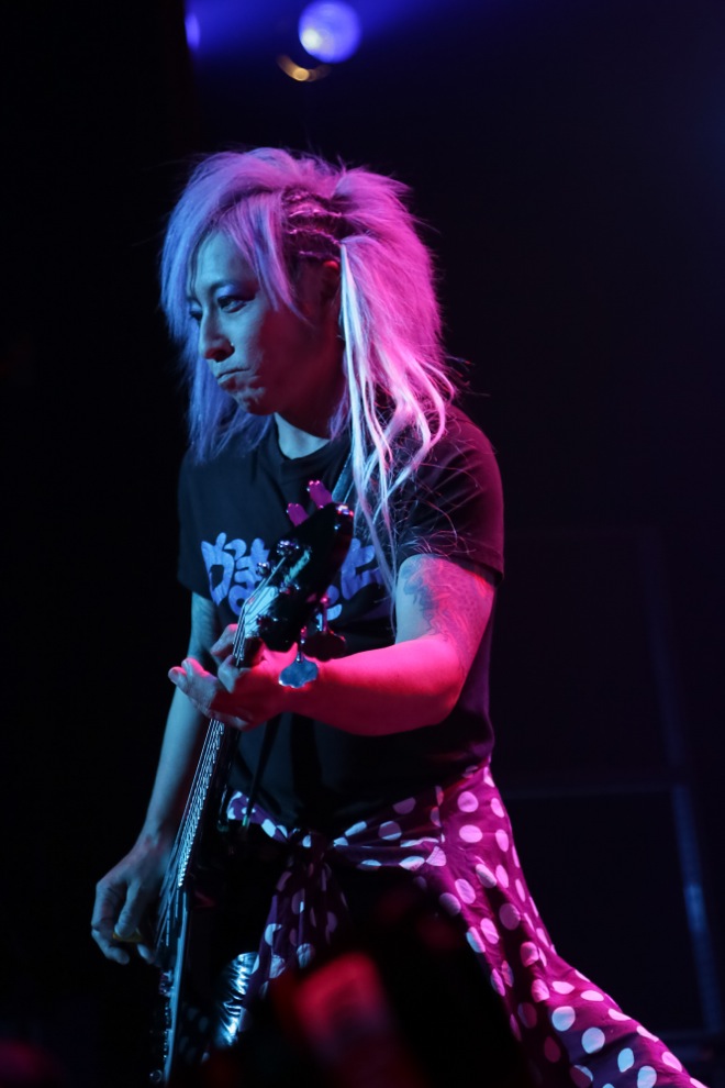 怒濤の終盤は「俺らよりカッコいいバンドがあるかー!」とSCEANAが叫んで「MASTURBATION」から。「TOY DOL(S)」ではフロアのモッシュが一段と大きくなり、26年前の渋谷公会堂破壊劇が脳裏をよぎる。本編ラストは曲中のベースのキメフレーズが印象的な「自由の女神」だ。CDNけんchanやSCEANAがMOGWAIのベース弦を弾き、圧巻の本編が終了した。