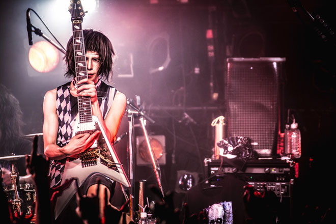 ステージを縦横無尽に翔けるCazqui(7strings)による、ノスタルジックさを内包したシュレッドプレイは随所で強い存在感を放っており、轟音の壁を麗しく・激しく創り上げるDaichi(guitar)とのハー モニーにも磨きがかかっている。この2人の掛け合いが強いタッグ意識の元に成立している事は、「FATE」が顕著に物語っていた。