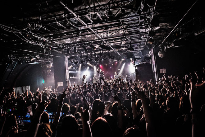 新たなツアーの開幕を告げるSEが鳴り響き、五人の登場を待ち望んだフロアから大歓声が上がる。彼らの1stフルアルバム『GRIMOIRE』の冒頭を飾る「Pandemic」が披露され、最新作『THE BEST 09-17』収録曲を含む、バラエティに富んだ楽曲群がセットリストを彩っていく。やはりここで見逃せないのは”ワンマンライブならでは”のアプローチだ。国内随一のシャウトボーカリストとして高い評価を受ける尋(Vocal)だが、「Aster」のようにメロディアスなバラードをも歌い上げるその様は、彼らの幅広い音楽性を象徴しているといえよう。なおかつ、ハードな長尺セットリストにおいても、決して声を枯らす事なく叫び倒す。あの鍛え抜かれた肉体がそのパワフルさを生み出しているに違いない!