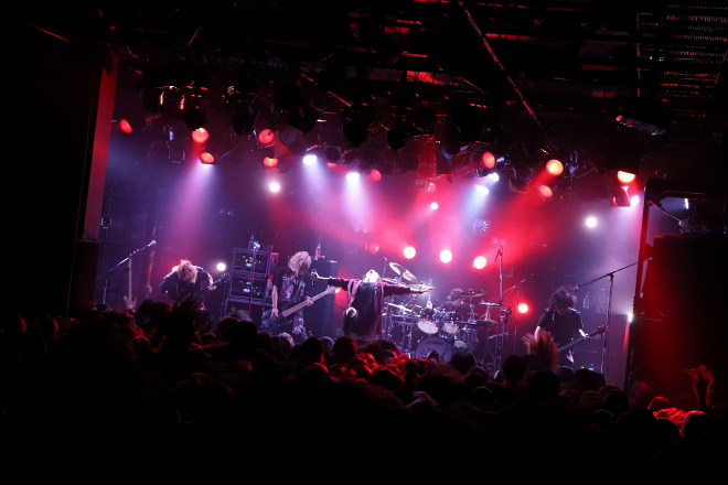 「まだまだいくぞ東京!」と舞台後方を指差し「jack the ripper」は、SHINがギターをかき鳴らしながらパフォーマンス。歌いながらギターを弾く姿も違和感なく馴染んでいて、早くも彼の新しい魅力となっていた。「みなさんこんばんは、SHINです」と丁寧に挨拶した後は、SuGについて触れ「ライバルでありながら、仲間だと思っていた」と語ったSHIN。ライバルだからこそ、「一緒の時代にいられて本当によかったです」と素直な気持ちを伝えた。見た目のイメージで「冷たいんじゃないかとかカッコつけてると思われがちだけど、どちらかというとチャーミングな人間なんです」といって笑顔を見せ、オーディエンスをほっこりさせた後は「ラストは、僕がやっとちょっとだけ前を向けたときに書いた曲をSuGのために歌います」といって「WEAKEND」をプレゼント。曲のエンディング、“もう一度歩きだすよ”というフレーズをエモーショナルに歌い上げ「この後、最高のバンドが出るからもっといい笑顔で迎えてあげて」という言葉を添えてステージを後にした。
