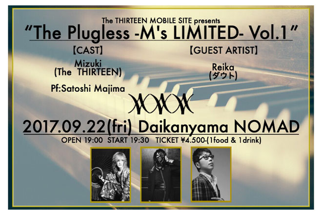 The THIRTEENの美月が、9月22日(金)にプラグレスライブ<The Plugless -M’s LIMITED-Vol.1>を開催することが決定した。