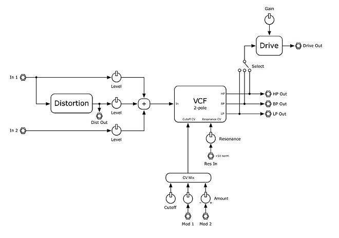 Waldorfから待望のユーロラック仕様フィルターモジュール「vcf1」登場、ディストーションやドライブセクションも装備