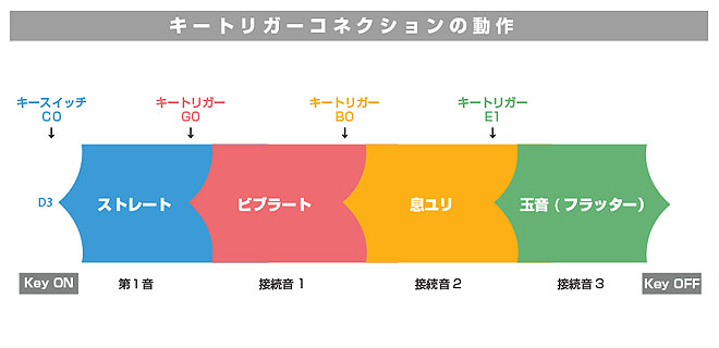 ▲キートリガーコネクション機能により、音が途切れることなく、アーティキュレーションがなめらかに接続する。
