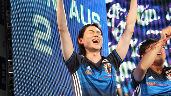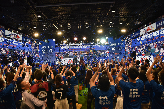 後半戦からは菅田も応援に参戦。応援に集中しながらもトークが繰り広げられ、現役時代のポジションを聞かれた菅田は「トップ下でした」と学生時代の思い出を語った。菅田と石山による解説を聞きながら試合を見守り、いよいよ終盤。後半37分で井手口陽介が追加点を決め、点差が開いたまま試合が終了し2-0で日本が勝利を収めた。