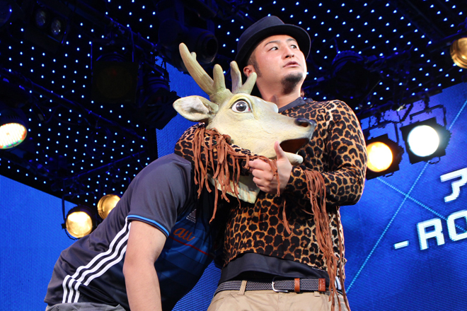 オープニングは山里とバンビーノが担当。菅田の登場を待ちわびていた観客の表情を見た山里は「居酒屋ではまず突き出しが出るでしょ! 菅田くんはすぐに来るから!」と笑わせる。続いてバンビーノが「ダンソン」ネタを披露し、ブラジルにサッカー留学していた経験を持つ石山によるリフティングパフォーマンスで会場を温めた。
