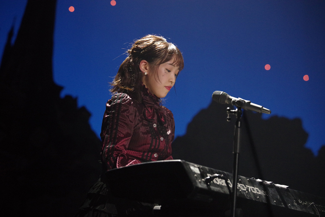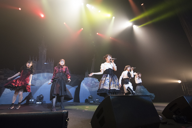 死に別れた大切な人との絆を歌い上げる「ホシノテレカ」からスタートしたライブは、さながら映画のイントロダクションのような幻想的なメンバー紹介VTRを挟んで進んでいく。序盤では「ナツニナレ!」「ぐらんぱぐらんぱ」「ステラとスバル 宇宙のラブストーリー」と一曲ごとに昼夜を重ねるような起伏のあるセットリストを組み、STARMARIEの5人による独特な振り付けでのダンスパフォーマンスとボーカルワークでマリスト達を惹きつけた。ステージにはどこかの街を空から俯瞰したようなアート仕立てのセットが登場。朝から昼を思わせる楽曲ではまばゆく、夜を思わせる楽曲では星空や暗闇を演出する。