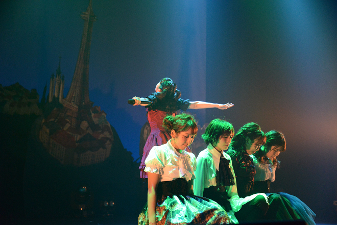 そして、ライブは高森がピアノ演奏をつとめる「ヘブンズ・ウェディング」へ。ここでは全員がそれぞれ生歌唱で全身全霊での表現を見せた。生歌唱曲としてはハードルの高い楽曲だが、中野サンプラザの大舞台でそれに立ち向かう5人のパフォーマンスには前回の中野サンプラザ公演に無かった前進の跡がみられ、曲後には観客席からも大きな拍手がわいた。