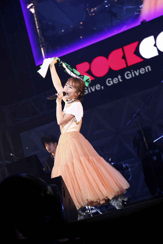 続いて登場したのは、2016年から<RockCorps supported by JT>の公式アンバサダーを務め、<セレブレーション>のMCも担当する高橋みなみだ。「今年で2回目の<RockCorps>なのですが、(昨年は歌わなかったので)ずっと<セレブレーション>の一体感が羨ましいと思っていた!」と笑顔で語った彼女は、新曲「孤独は傷つかない」を皮切りに3曲を歌い上げ、ラスト「錆びたロック」では「先ほどのSPYAIRさんのとき、皆さん持ってましたよね……タオル! 忘れられない<RockCorps>にしましょう!」と観客と一緒にタオルを回して会場を盛り上げた。