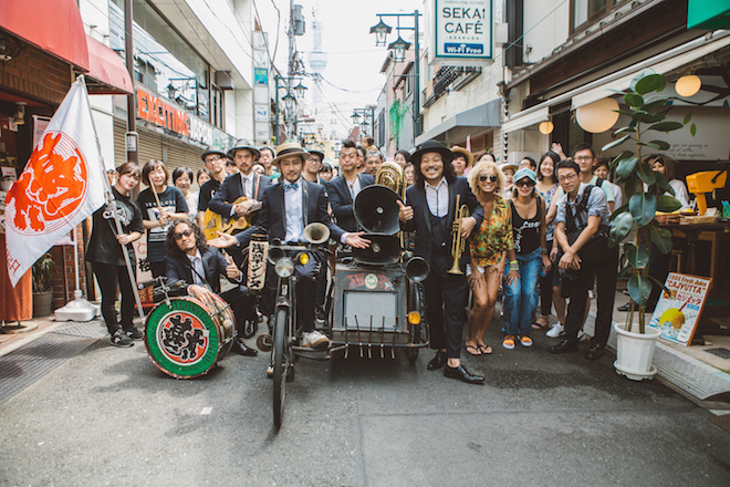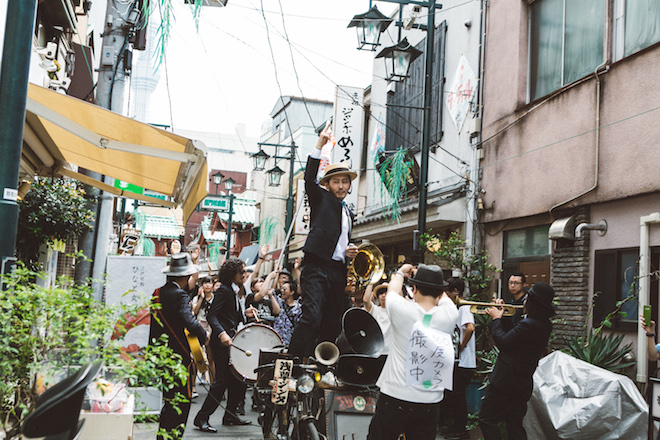 その演奏力と適応力、バンドとしての基礎体力と瞬発力は街によくいるバンドとは桁違いで、どんな場所でもどんな条件でも、彼らが音を出せば一帯の空気はガラリと変わる。日本のフェスはもちろん、世界各国で行ってきたライブの積み重ねが、浅草ジンタという全天候型の強烈なパフォーマンスを生み出したわけだ。
