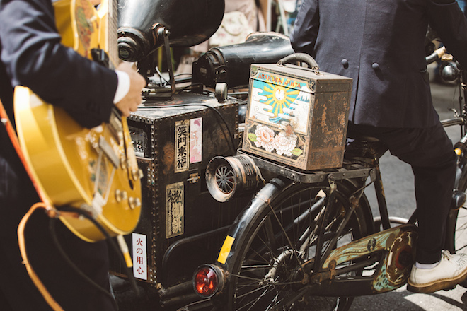 そんな浅草ジンタが“浅草ジンタ・フレイバー”を最大限に振りまく様子を捉えたい。そこで用意されたシチュエーションが、音響付きリアカー自転車“ジンタ号”を携えて浅草の街を練り歩くという、浅草ジンタじゃなければ実現し得ないエンターテイメント空間だ。そしてその様子を100%超絶美麗画質で記録するのが、360°カメラ「RICOH THETA V」というわけである。