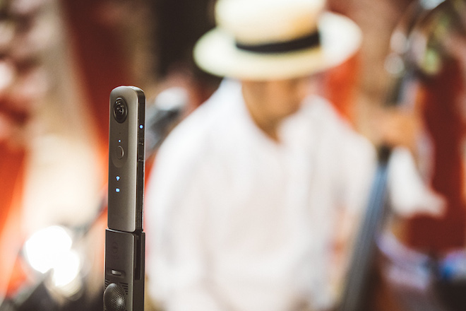 THETA Vは9月1日に発表された最新の360°カメラで、どんな動きも見逃さない4Kクオリティと聞こえてくる音の場所までくっきりと描き出す360°空間音声機能を搭載している。どんなところでもパフォーマンスできてしまう浅草ジンタと、どんな映像/音声をも余さず捉えるというTHETA V…、「浅草ジンタ VS THETA V」という一発撮りバトルコラボが面白くないはずがない。